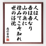 2021年7月31日 / 最終更新日時 : 2021年7月31日 meigen.toweb すべて 江戸時代の人物「亜欧堂田善」の辛い時も頑張れる名言など。江戸時代の人物の言葉から座右の銘を見つけよう 励まされる、江戸時代の人物の言葉をご紹介します 吉村虎太郎の名言書道色紙『吉野山風に乱るるもみじ葉は我が打つ太刀の血煙と見よ』Y0234>>この言葉を書道で直筆いたします。 自分の特性を発見し、じっくり育み、自分なりの形 […]