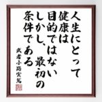 2021年7月31日 / 最終更新日時 : 2021年7月31日 meigen.toweb すべて 小説家「伊井直行」の辛い時も頑張れる名言など。小説家の言葉から座右の銘を見つけよう 強い心になれる、小説家の言葉をご紹介します 武者小路実篤の名言書道色紙『人生にとって健康は目的ではない、しかし、最初の条件である』Z0709>>この言葉を書道で直筆いたします。 故人がぼくらにどれだけ影響を与えたかを考え […]
