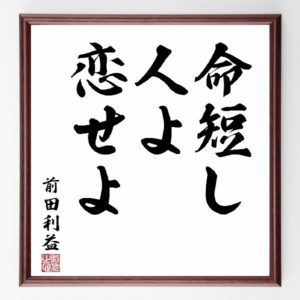 2021年7月31日 / 最終更新日時 : 2021年7月31日 meigen.toweb すべて 戦国時代の人物・武将「那須政資」の辛い時も頑張れる名言など。戦国時代の人物・武将の言葉から座右の銘を見つけよう 自分らしく生きられる、戦国時代の人物・武将の言葉をご紹介します 上杉謙信の名言書道色紙『我は兵にて戦いを決す、塩にて敵を屈せしめることをせじ』Z7628>>この言葉を書道で直筆いたします。 現実の問題って多種多様ですよね。あらゆる問題が、一個一個、個別なんです。その多様性に対して普遍的な見方、考え方で整理できるというのが、数学の魅力だと思います。/石川正道 人と共にして失敗した責任を分かち合うのはよいが、成功した功績は共有しようとしてはならない。共有しようとすると、仲たがいの心が生じてくる。 どんな靴を履いてても歩けば僕の足跡立ち止まればそれまで僕が終わる印 子供の頃を懐かしんでいる人は明らかに子供ではない。/ビル・ゲイツ 落ち着いているならば救われ、穏やかにして(自らを)信頼しているならば力を得る。 勝つことしか考えない人間よりも、勝負の過程を楽しめる人間のほうが、結局最後には強い。 テレビに出て人に知られると、偉くなったような気がするのよね。たかが有名になっただけで、偉くなったんじゃないってことがわかってないのよね。 アメリカにおいては、人々を判断するには、彼らの生活程度から推定される収入の多寡によるのが早道である。/バートランド・ラッセル 下らなく過ごしても一生、苦しんで過ごしても一生だ。苦しんで生々(いきいき)と暮らすべきだ。 人間は偉大になろうと決意して初めて偉大になれるのだ。/ドゴール ひょっとすると、あなたに必要なのは、あなたは価値ある人間だ、という証明であって、百万ドルではないかもしれない。 相手が不快なことを口走っても嫌がらずに、むしろ積極的にそれをとりあげて、少しでも相手の意見を尊重していることを示すのだ。そうすれば相手もこちらの意見を尊重してくれる。 満足は自然の与える富である。贅沢は人為的貧困である。/ソクラテス 笑いがガンに克つ笑いは人間のストレスを解消する働きを持っているのです。これは科学的にも立証されていること。現代人の敵と言われる?ストレス?を絶つ上でも、エンターテインメントの使命は大きい。/中邨秀雄 人生はメッセージです、聞きなさい。人生は信念です、信じなさい。人生は贈り物です、受け入れなさい。人生は冒険です、挑戦しなさい。 水の水上尋ぬれば、始めは苔の雫なり。 みんな、『戦え』『向き合え』『乗り越えろ』って口をそろえて言うけど、時には、『逃走』という名の『闘争』の方が、結果的にうまく行く場合だってあるんだよ。 他人のために尽くすことだ。そうすれば、つまらない劣等感など、七月のとうもろこし畑にかかる朝露のように、跡形もなく消え失せてしまう。 高徳なる知識は、ここちよい寝床/キュルケゴール 成功は常に苦心の日に在り、敗事は多く得意の時に因ることを覚る/安岡正篤 福沢諭吉の名言書道色紙『自由とわがままとの境は、他人の妨げをなすとなさざるとの間にあり』Y0960>>この言葉を書道で直筆いたします。 人間という奴はいつでも、人に騙されるよりは自分で自分に嘘をつきたがるものなのだ。そして、無論、人の嘘より自分の嘘の方を余計に信じるのだ。/ドストエフスキー 勝てっこない?ふざけるな心で負けてる奴に、女神が微笑むものか 私に翼をくれるなら私はあなたのために飛ぼうたとえばこの大地の全てが水に沈んでしまうとしても私に剣をくれるなら私はあなたの為に立ち向かおうたとえばこの空の全てがあなたを光で射抜くとしても 僕がこれまでどうやってきたかは教えられるけど、君がこれからどうするかは自分で考えなきゃ/サミュエル・ジョンソン 別れの辛さに馴れることは決してありません。幾度繰り返しても、別れは辛く苦しいものです。それでも、私たちは死ぬまで人を愛さずにはいられません。それが人間なのです。 いい子の時はとてもとてもいい子。だけど悪い子のときはぞっとする。/マザーグース ブスにキスはしないこと。きっと自慢げに言いふらすから。 女の子がみんな、『青春は恋と革命だ』って生きていたらね、世の中よくなりますよ。戦争はいやだとか、政府は間違っているとか、立ち上がってね。 孤独な人間がよく笑う理由を、たぶん私はもっともよく知っている。孤独な人はあまりに深く苦しんだために笑いを発明しなくてはならなかったのだ。/アニー・ディラード ある本はその味を試み、ある本は呑み込み、少数のある本はよくかんで消化すべきである。/ベーコン 上司からいわれたことを要領よくやっていれば、サラリーマンとしては出世できるかもしれないが、仕事をする人間としては役立たなくなる。 人生は、その人の勇気に比例して、小さくも大きくもなるのです。/刈屋富士雄 人は自分がいつ頃、死ぬかと、時々考えるだろうが、ど