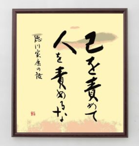 >>この名言集・座右の銘・格言・言葉をもっと詳しく - 名言集・座右の銘『己を責めて、人を責めるな』徳川家康※額付き
